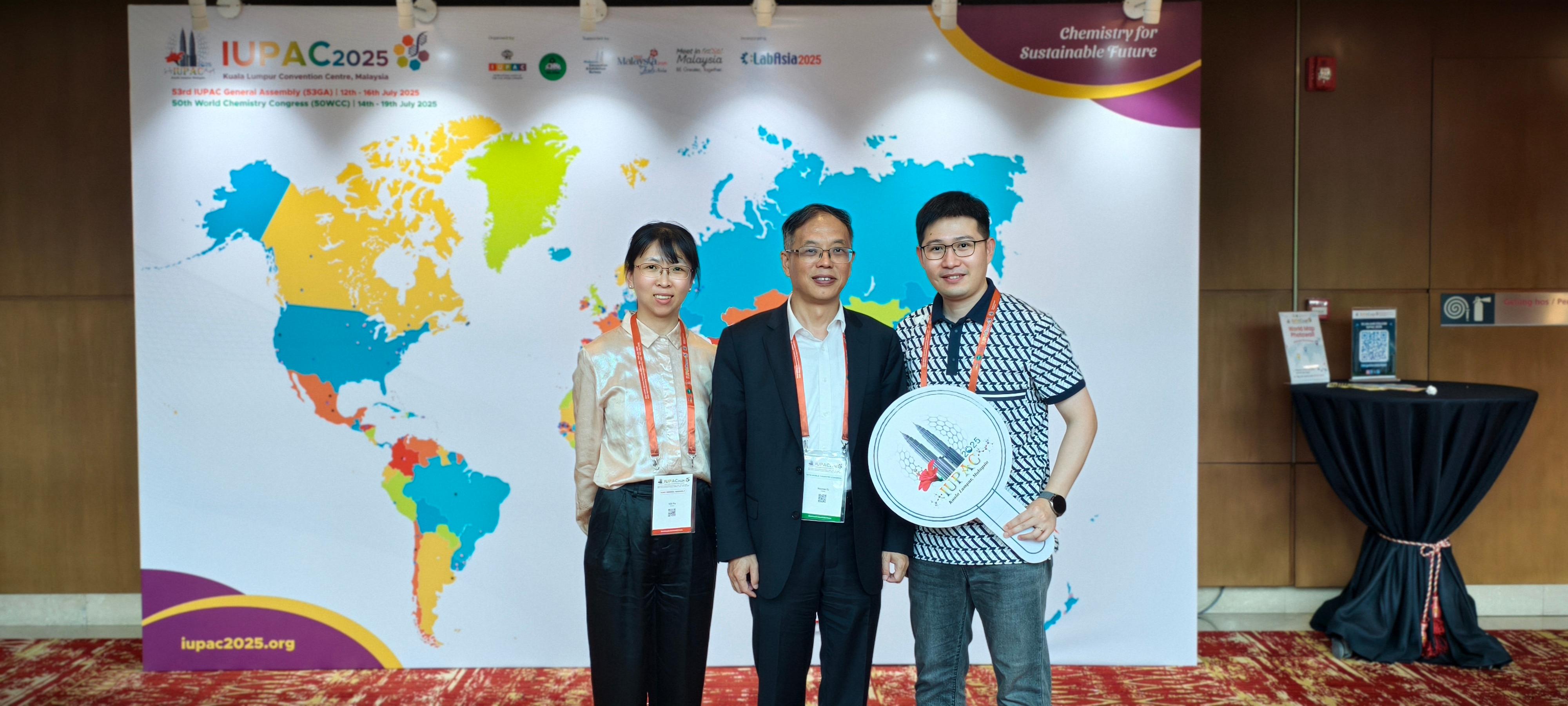 From July 12 to 19, the 53rd IUPAC General Assembly & the 50th World Chemistry Congress took place in Kuala Lumpur, Malaysia, under the theme ¡°Chemistry for a Sustainable Future¡±. Mr. Li Haoran, Honorary Dean of the NHU Research Institute, Ms. Yu Lili, Assistant Dean and Deputy Director of the Product R&D Department, and Mr. He Qiyang, Deputy Director of the Science and Technology Cooperation Department, joined over 3,000 chemists from around the world to explore the vital role of chemical science in addressing global sustainability challenges.