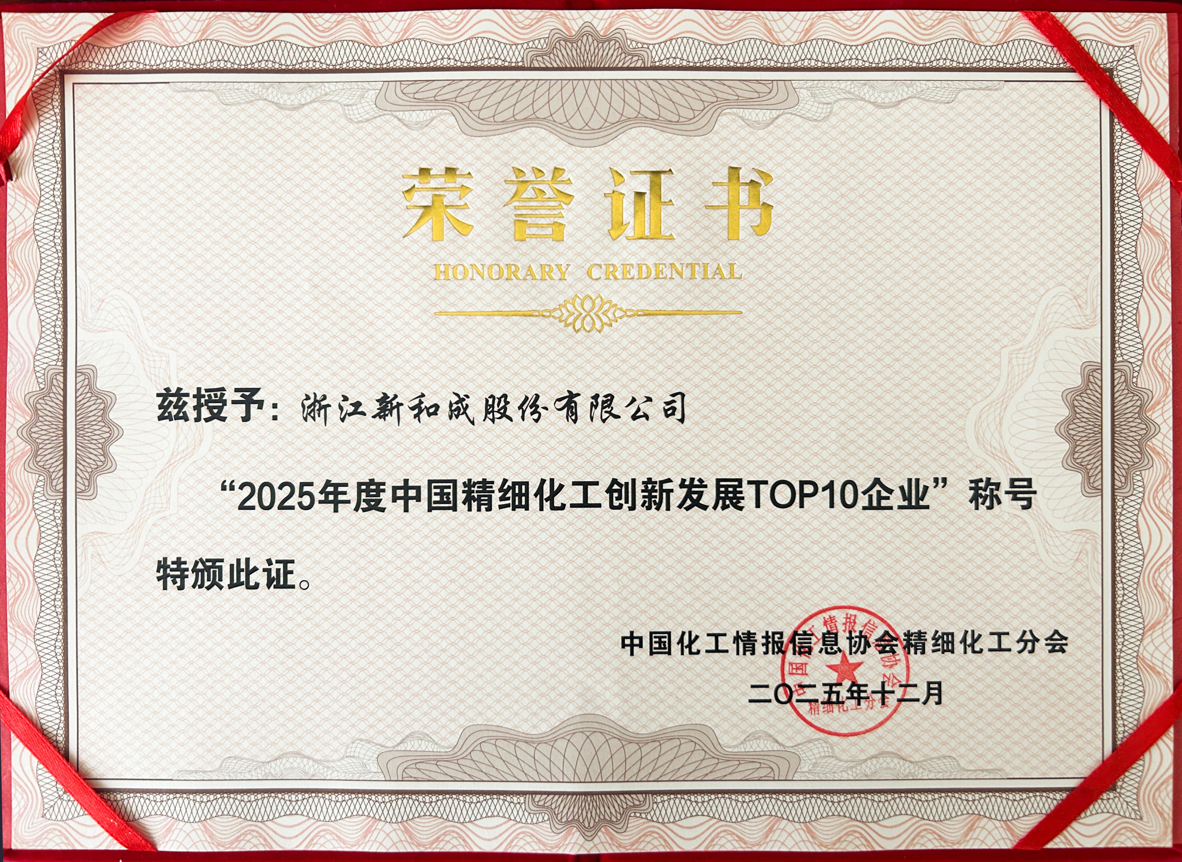 NHU claimed the top position in both the 2025 China Top 100 Fine Chemical Companies and the 2025 China Top 10 Fine Chemical Innovation and Development Companies. This double recognition affirms NHU¡¯s overall industry leadership and highlights our strengths in management, innovation, and green development.