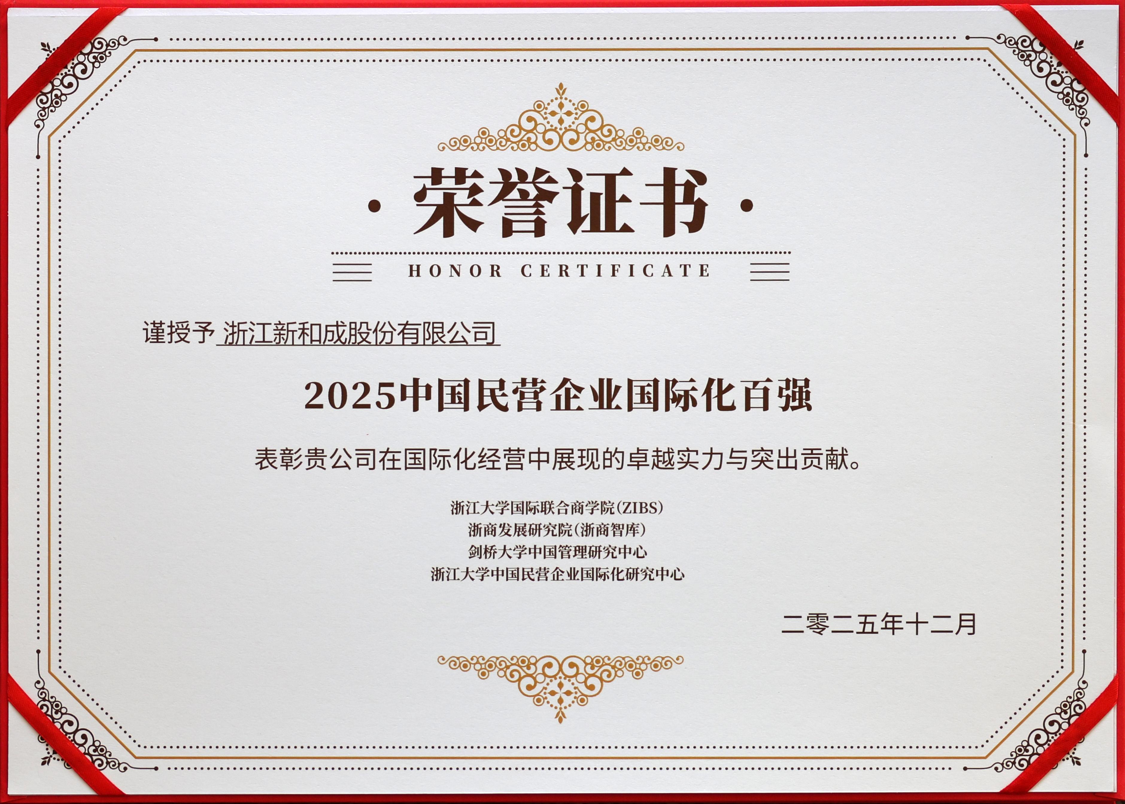 On December 12, the forum ¡°Resilience, Symbiosis, Leadership ¨C Release of the Top 100 Chinese Multinational Private Enterprises and the Zhejiang Business Think Tank Dialogue on the 15th Five-Year Plan¡± was successfully held in Hangzhou. At the event, the Center For Chinese Multinationals (CCM) of Zhejiang University Business School (ZIBS) released the Top 100 Chinese Multinational Private Enterprises 2025 list. NHU was honored to be included, in recognition of its forward-looking global strategy, robust and continuously innovative R&D system, and growing international influence.